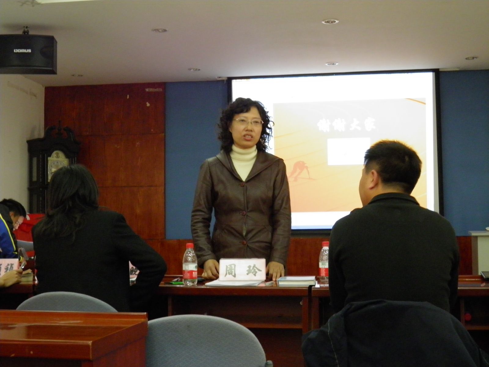 打擂结束后,周玲教授表扬了在场的全体同学。她称赞同学们都很优秀,不仅学习优异而且全面发展,希望在场同学能够树立榜样,带动他人,发扬学风!她还向同学们提出了两点建议:1.扎扎实实,深入钻研;2.持之以恒学习,切记投机取巧、考前突击。随后,张远航老师上台讲话。他说,打擂的形式能够充分展示自己,让同学们相互学习,取长补短,希望大家以后能够以此为起点,发展的更好。