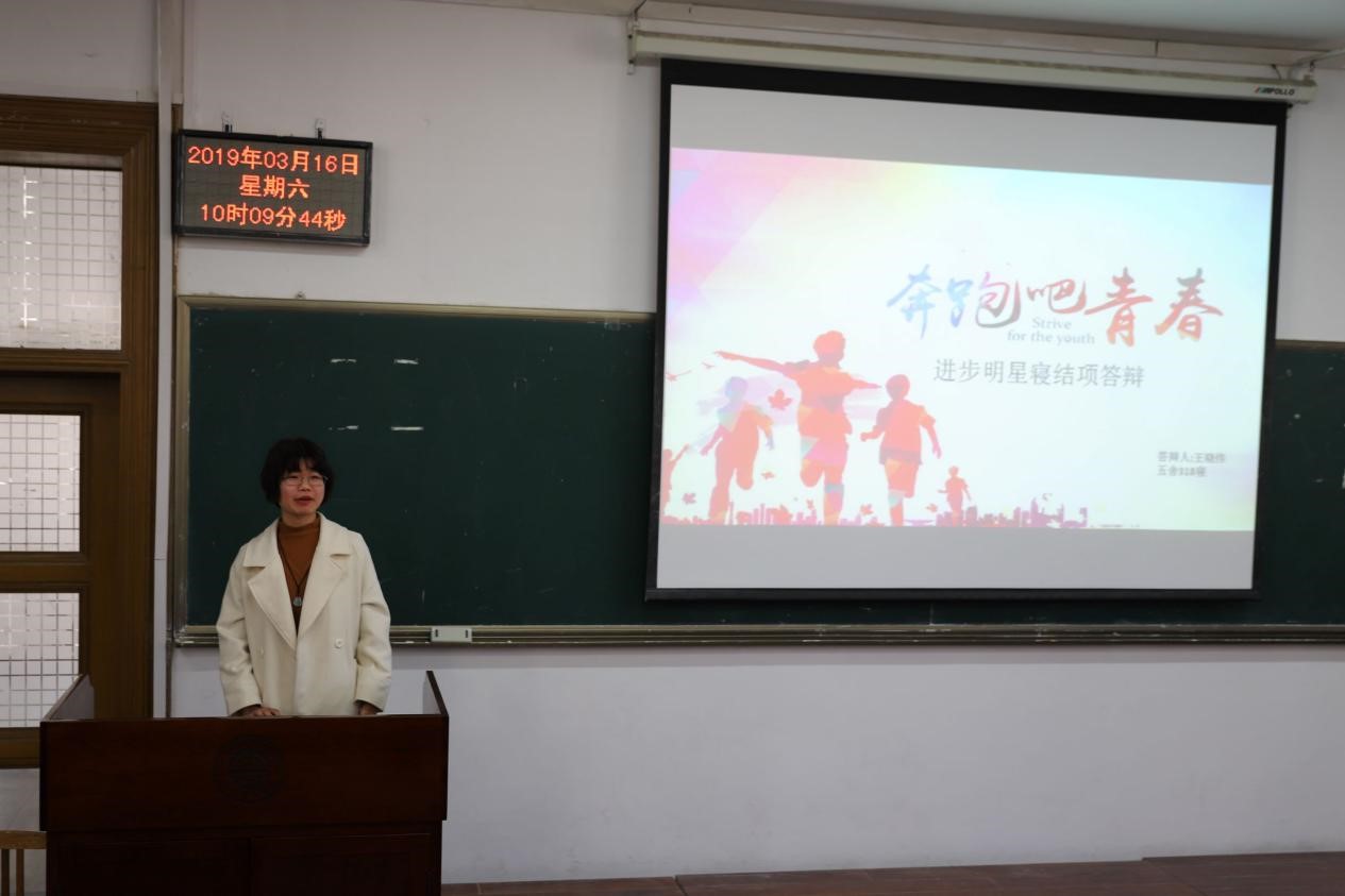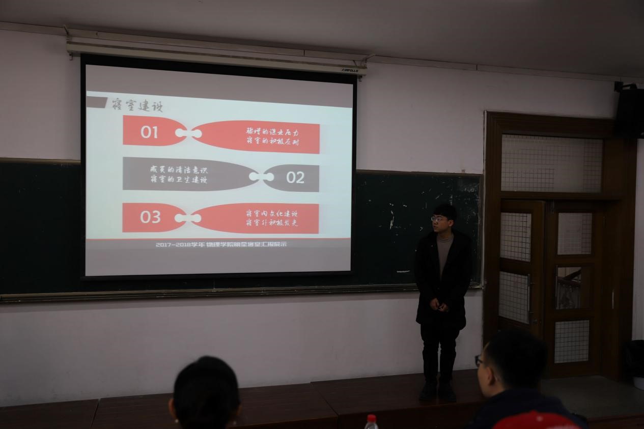 接下来,11间获评“优秀结项”的明星寝室代表分别进行了寝室建设汇报及经验交流。主要内容为成员介绍,寝室特点,遇到的问题,具体建设举措,给低年级同学的建议等。各位“明星寝室代表”围绕着自己寝室的特色称号,分别对寝室的成员构成、团结建设、特色建设等方面进行介绍,获评“优秀结项”的寝室各具特点、各有侧重,展现了公司学子携手同行的青春活力。