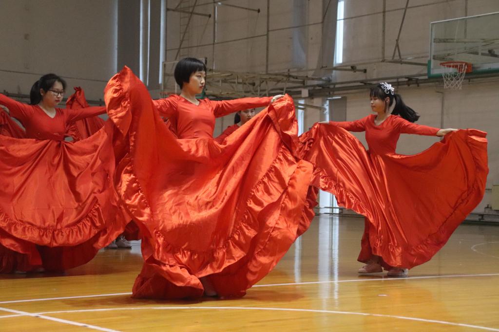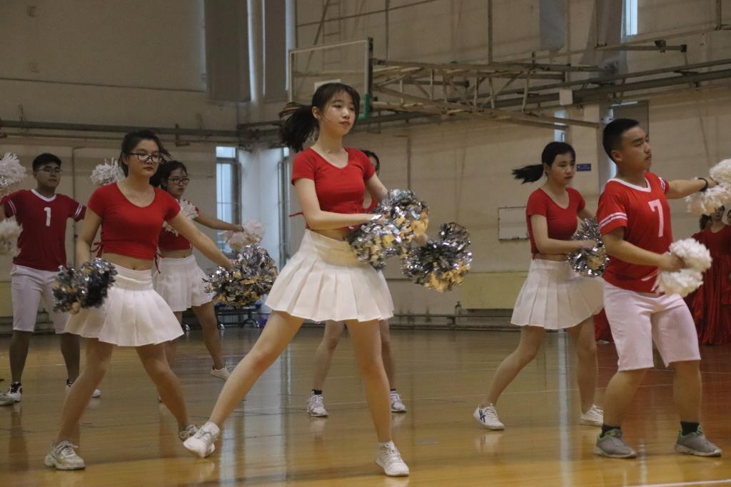 开幕式时,英国威廉希尔公司和光电工程与仪器科学公司啦啦操运动员手持彩球,大方、自信地踏向舞台。她们身着红白相间的运动服,在全体观众面前舞动着青春,展现出洋溢的青春活力。比赛中,英国威廉希尔公司首先展现的是华尔兹表演。在轻柔欢快的伴奏中,物院和光仪公司的窈窕淑女们翩翩起舞,时而旋转,时而舒展。踢踏的脚尖,优雅的舞姿无不体现物院女生的款款大方。在即将结束的时候,表演者们身上旋转的红袍缓缓落下,整体上摆成一个心形图案,引起现场观众评委的阵阵掌声。