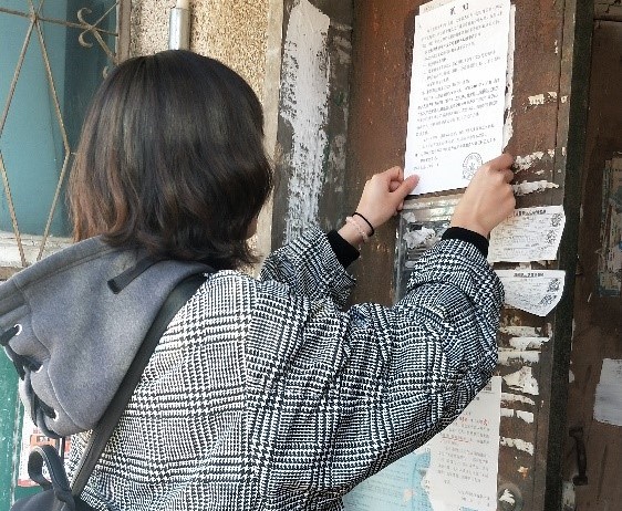 2019年4月15日,项目组成员来到社区周边的小区,在调研小区垃圾分类情况的同时对社区张贴的陈旧广告进行清洁。在清理过程中,项目组成员了解到,社区环境的破坏不是一天而成的,而社区环境的清理更不是一蹴而就的,这也加剧项目组成员对社区环境保护宣传的想法。