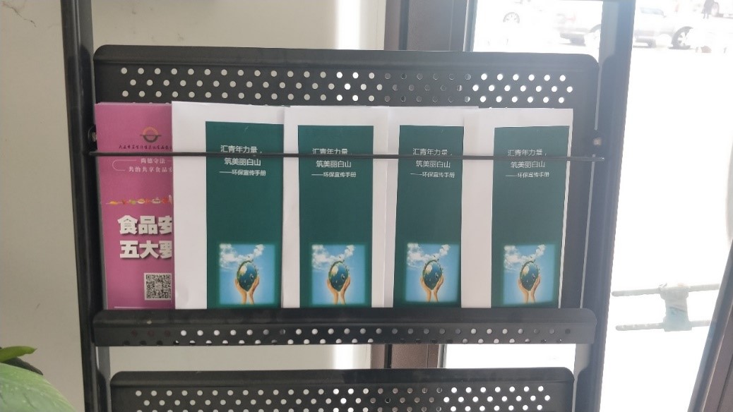 2019年4月15日队员们来到社区为居民们进行宣讲活动,在宣讲中队员对有关环境的多个问题做清晰的解释和阐述,同时队长制作垃圾分类,节约用水两个与居民生活息息相关的方面的宣传手册,在宣讲结束后,为社区居民进行发放,并大力号召居民进入到环境保护的行列中来。在与社区协商以后,项目组成员将制作的宣传手册摆放至宣传栏,供居民传看。