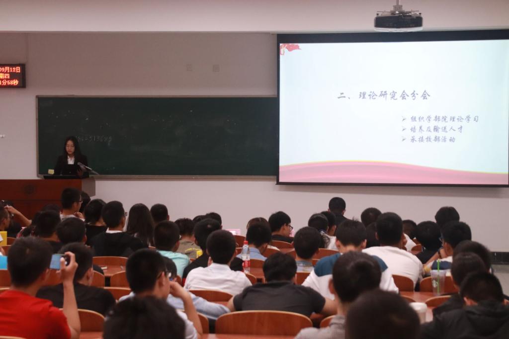 理论研究会及组建大会于2019年9月14日晚20:00在西部综合楼B401召开。由校团委宣传部理论模块成员讲解大工课余理论学习体系。