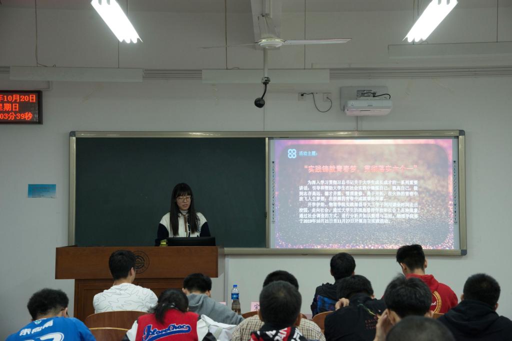 2019年10月20日18:00,2019-2020自主实践月活动在综合二号教学楼A306教室顺利举行。出席本次活动的嘉宾有员工会主席王栋梁,常务副主席宋玺尧,组织部部长温荣贤,实践部部长唐雯月和实践部副部长陶艾龙。