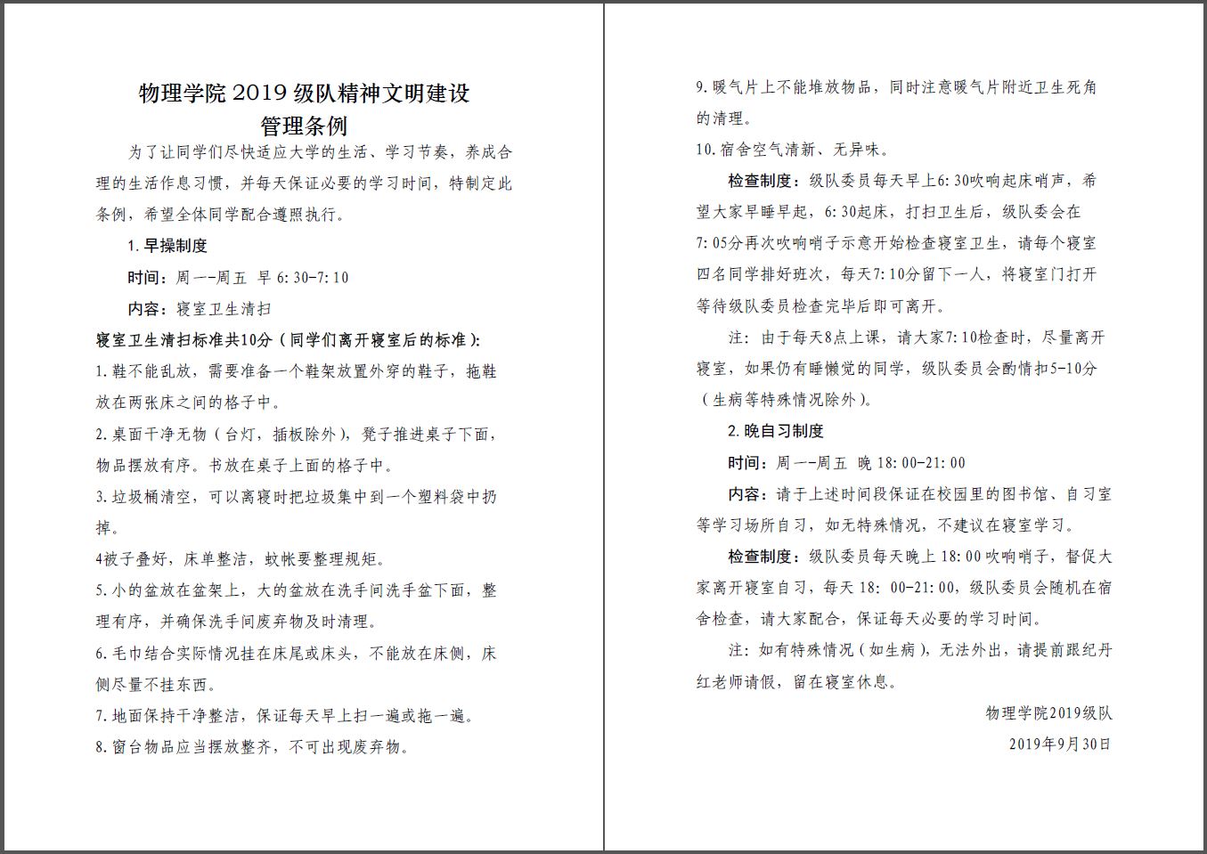 为落实williamhill官网安全教育活动月的号召,英国威廉希尔公司将传承性的精神文明建设制度继续发扬,结合安全教育的初衷,设计早操和晚自习制度,为更好地保证大一员工身心安全保驾护航。这是具体的制度条例。