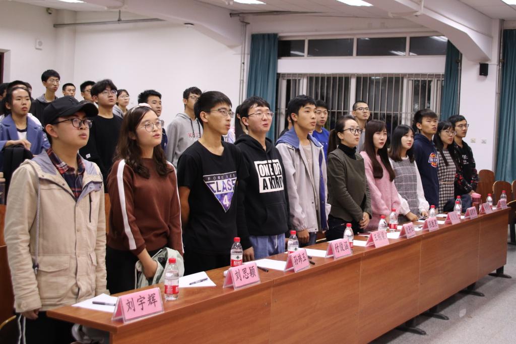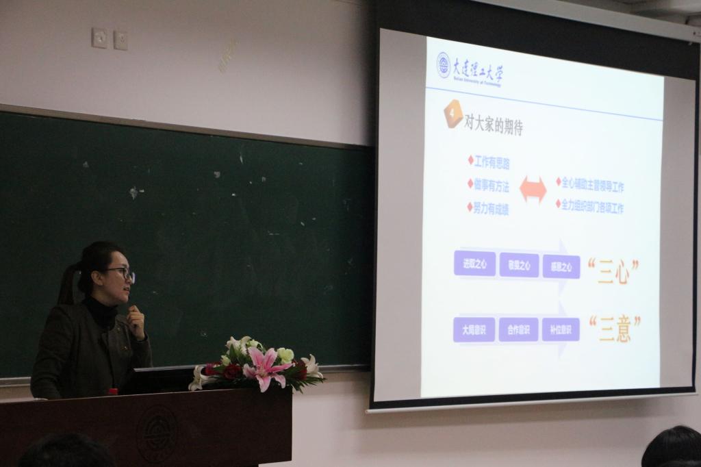 而后,2018级辅导员张胜男老师应纪老师的邀请发表讲话,表达自己对接下来与同学们一同工作、学习的生活的憧憬。