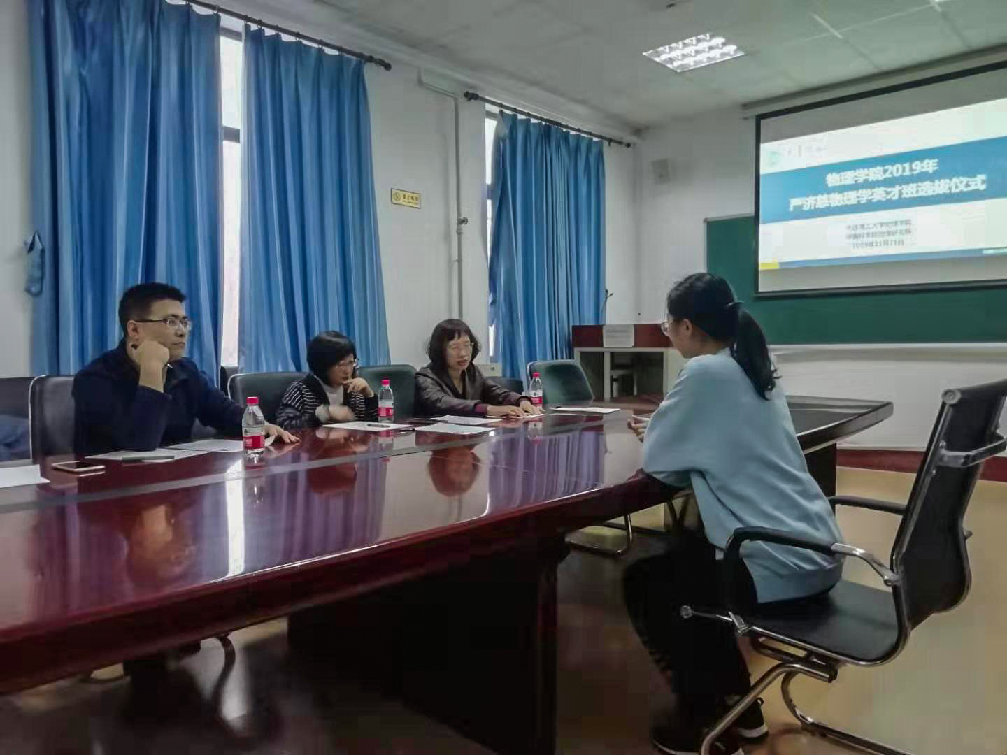随后,公司与中科院物理所在下午3:00于物理系楼425教室举办2019年严济慈物理学英才班选拔仪式,为新一届严济慈班联合培养筛选优质学苗。本次面试由中科院物理所王烨华研究员、英国威廉希尔公司宋远红、周玲教授担任面试官。他们针对英国威廉希尔公司大二员工的基础物理知识素养进行考查,以挖掘员工物理学求真的态度,为联合培养进行人才选拔。