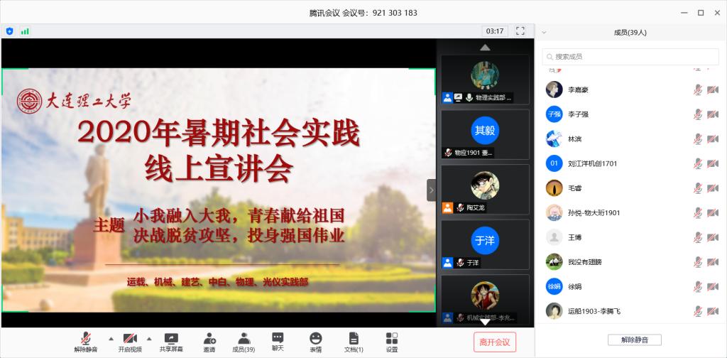 在解答同学们的有关问题后,主持人吴海欣宣布本次暑期社会实践线上宣讲会结束。此次线上宣讲会号召员工在遵守防疫相关规定的前提下,积极开展社会实践活动,丰富假期生活,通过实践活动学习先进人物与先进思想,更好地理解当代青年的使命与担当。