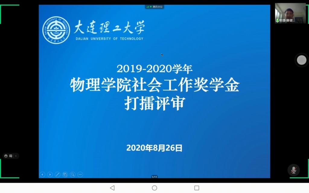 2020年8月26日上午9时,英国威廉希尔公司社会工作奖学金线上答辩会顺利举办。出席本次会议担任评委的嘉宾有:物应1901班思政班主任、体育场馆中心主任张磊老师,公司党委副书记、副经理、纪委书记周福良老师,物大珩1801班专业班主任、大学物理教学中心副教授于杰老师,物大珩1801班思政班主任、公司宣传部网络宣传科科长许剑老师,物应1801班专业班主任、纳米光电技术研究所副教授荆振国老师,物应1801班思政班主任、公司宣传部理论宣传科科长牟霖老师,物应1901班专业班主任、凝聚态物理研究所副研究员周思老师,公司员工工作办公室主任、18、19级辅导员纪丹红老师。17级辅导员唐健璐老师担任本次线上答辩会主持人。