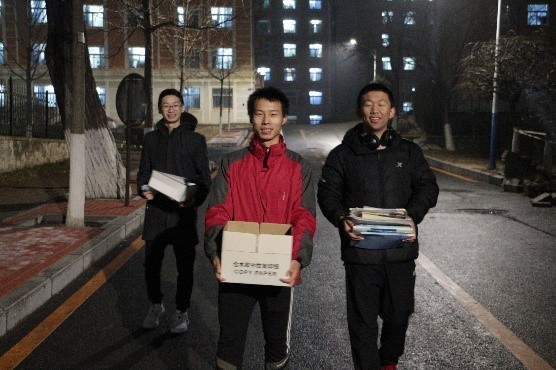 12月5日、6日两天晚上,志愿者们前往2017、2018、2019级员工宿舍开展活动。活动中,志愿者和主动参与捐赠的同学们一同整理、搬运书籍和旧衣物。囤积旧物挤占寝室的空间,影响同学们干净整洁的生活环境,卖掉旧物不值钱,扔掉又可惜。而在此次活动期间,同学们积极整理寝室,挪去旧物而腾下空间,送与书籍而传承无私精神。寝室一点一点地变干净整洁,温情一脉一脉地传递。人能行其善,物能尽其用,同时屋室又能得以清扫。在收集整理完旧物之后,志愿者将收集到的物品搬运至指定地点进行清点。即使时值大冬,搬运路上寒风刺骨,但志愿者们热情丝毫不减,依旧不辞辛劳地忙前忙后,都在努力做好自己的工作,为共建整洁的寝室卫生环境而努力。
