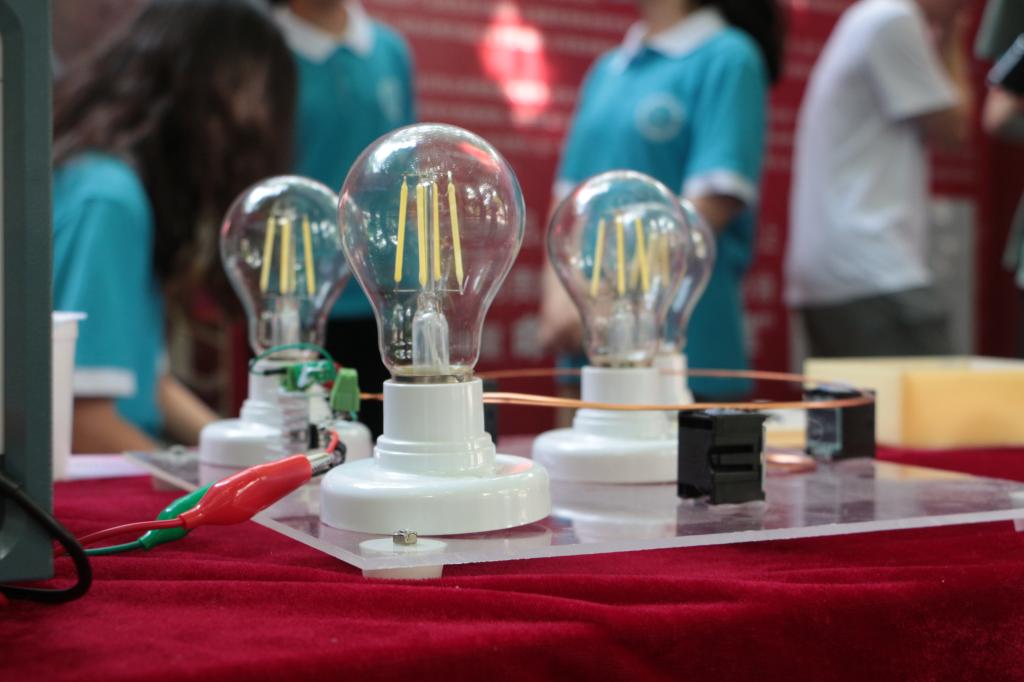 明德路处处红旗招展,洋溢着党百年华诞的气氛。2021年7月1日上午七时,场务人员开始他们一天的忙碌,在取完物品之后,场务人员精心布置展位,同时科普讲解员也在熟悉精心准备的实验仪器并排练讲解内容。