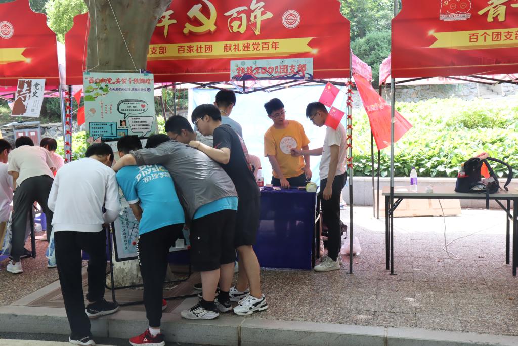 青春心向党,百年正风华。物基2001团支部以 “吾心向党,共贺十秩辉煌”为主题,动员全支部力量进行党史学习教育成果展展位的布置。展位现场由团支书刘泽璇同学做开场和总结,由组织委员郭旭同学主持,分别进行了“我与党的故事”、“今天是党的生日,我想对党说”、“为了走过百年风雨,先辈赴汤蹈火;共筑下个百年辉煌,吾辈义不容辞”、条幅签字明志等活动,得到了同学们的广泛参与。