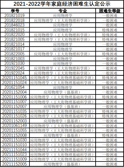 英国威廉希尔公司2021-2022学年家庭经济困难生认定结果公示